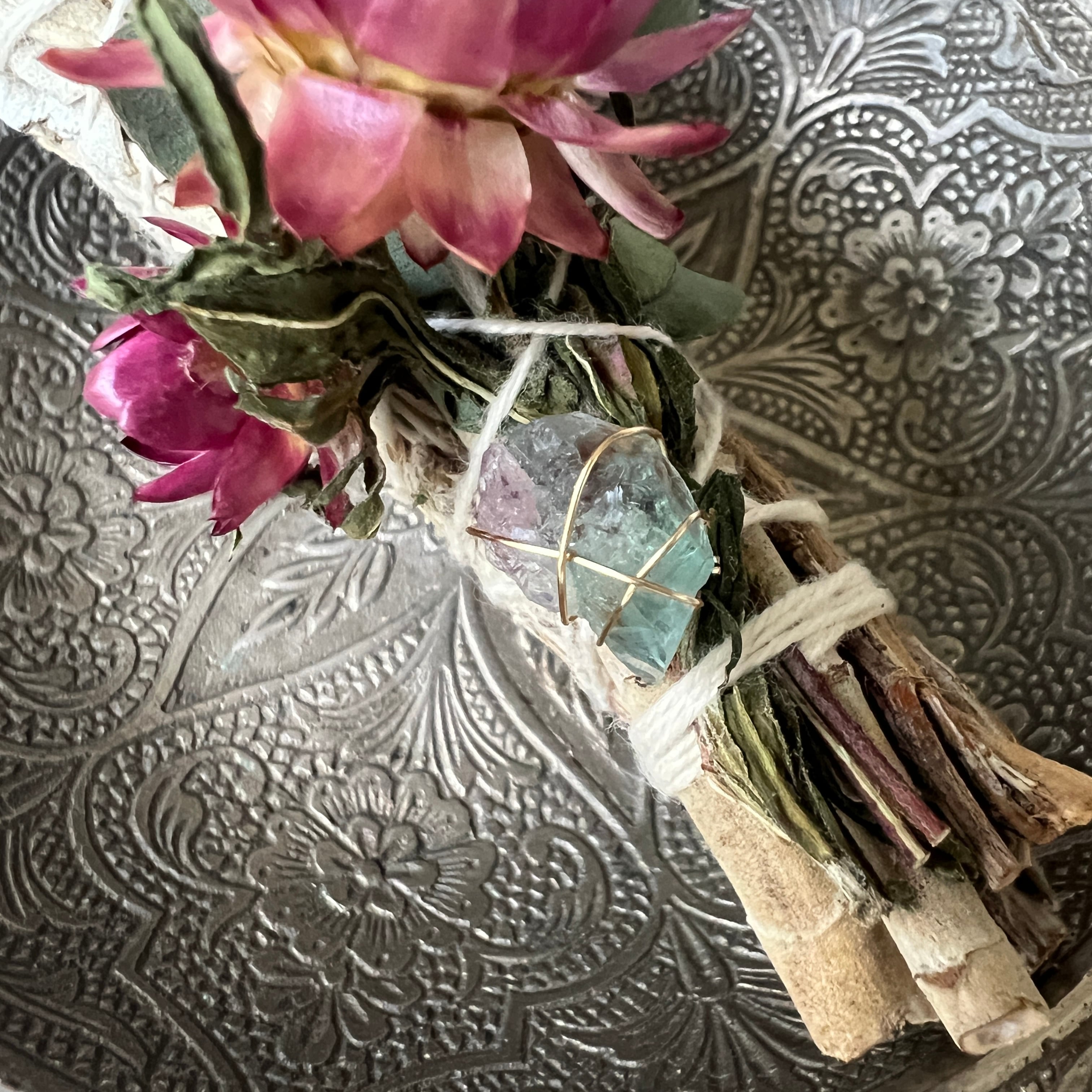 ハーブを燃やしたときの煙を空間や天然石、